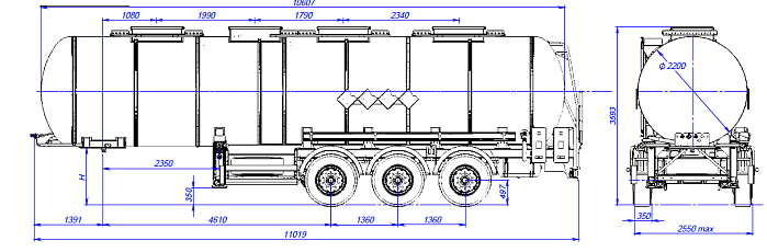 Цистерна для химии цистерна 96487T является оптимальным вариантом для транспортировки битума, мазута, нефти – огнеопасных веществ, разогретых до 200-230 градусов и других веществ. Технические и конструкционные профессиональные решения делают данную технику надежной, долговечной и безопасной, устойчивой к потенциальному переворачиванию.