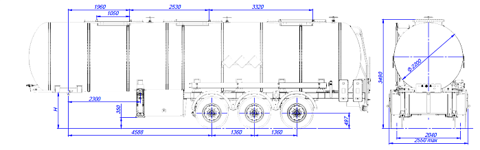 Полуприцеп sf3928 имеет следующие основные характеристики: номинальная емкость 28000 литров, габариты техники составляют 10,9х3,6х2,5 м., показатель грузоподъемности – 25,2 тонн, а общая масса 32000 кг. Возможно разделение от 2 до 3 отсеков.